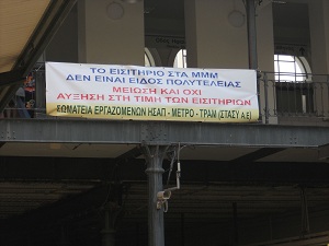 Πανό στον Σταθμό Μοναστηράκι